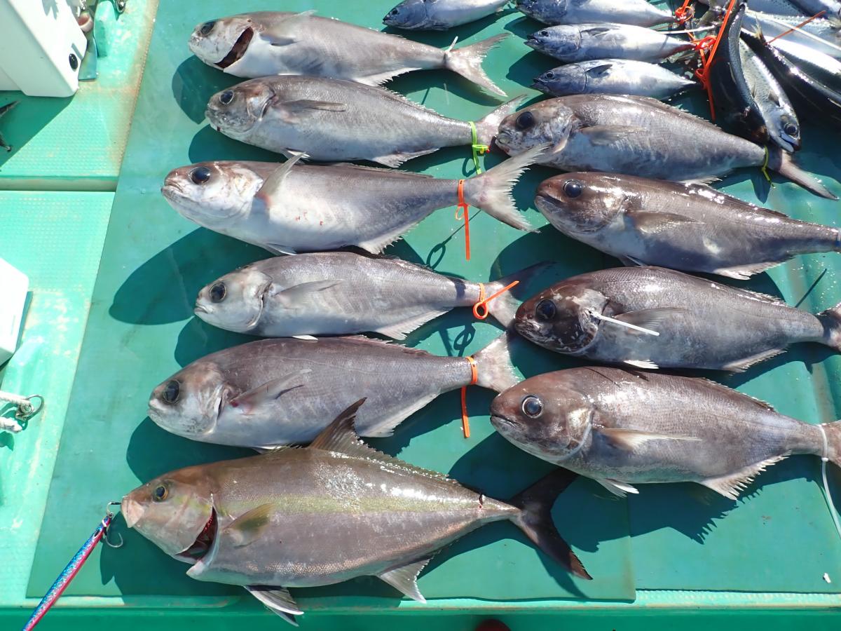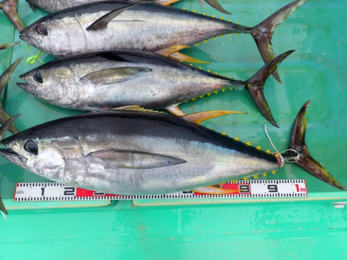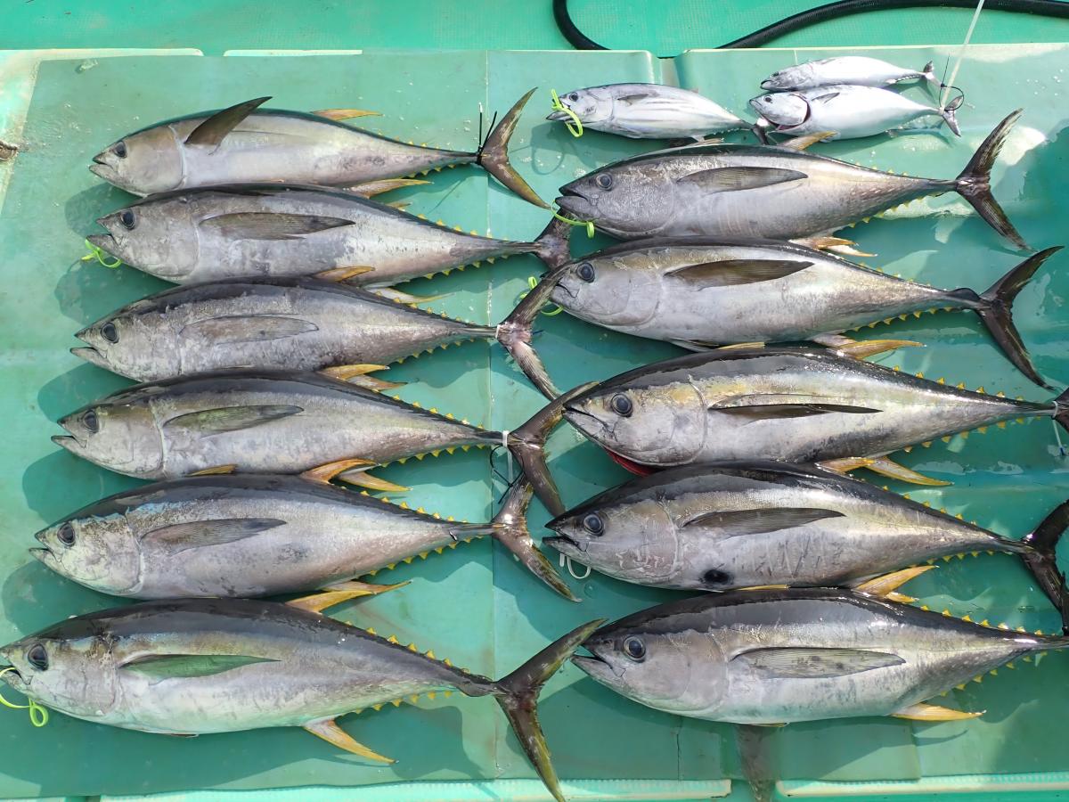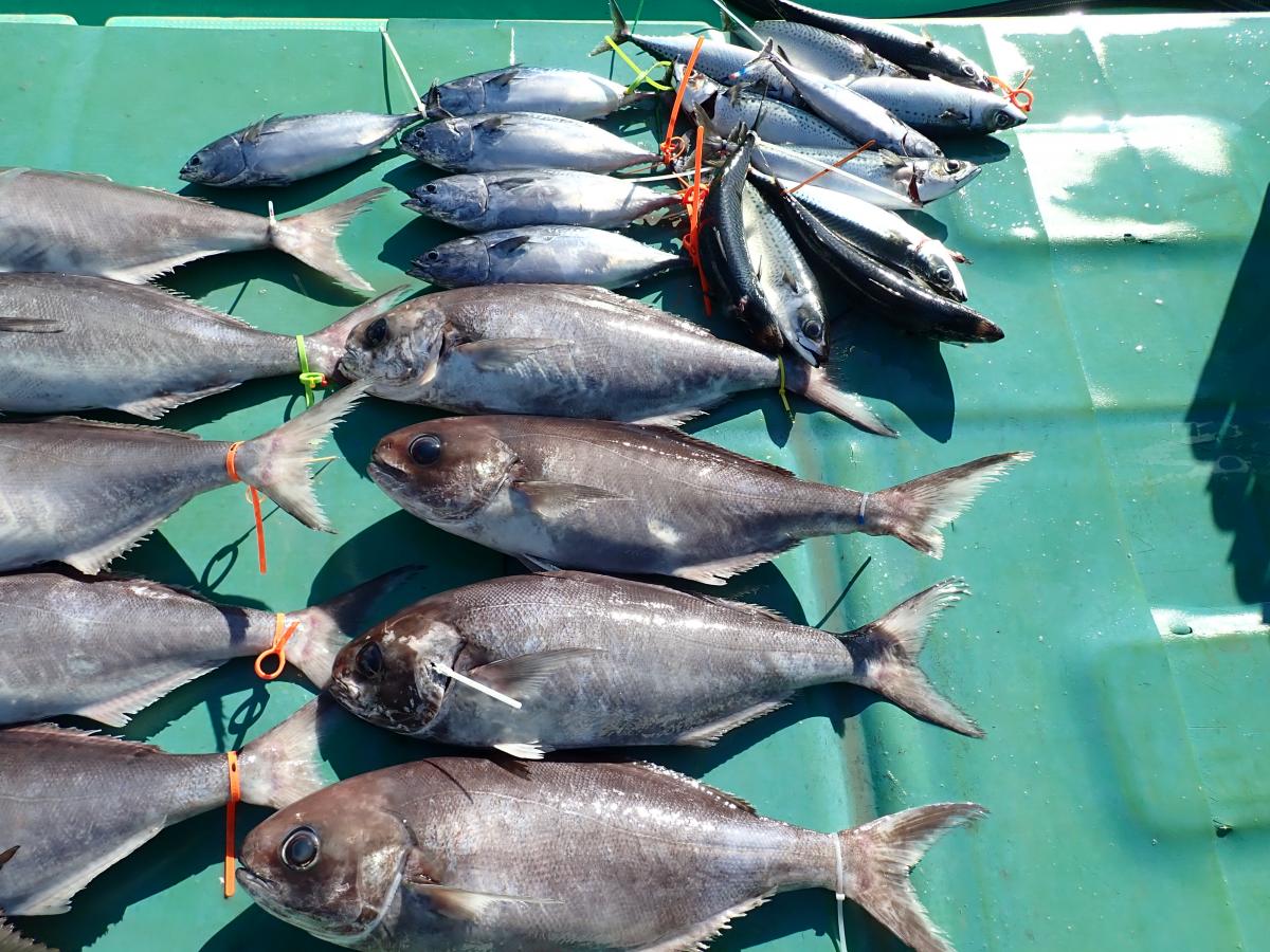 キハダ、キメジ、カツオ、ヒラソウダ、メダイ他。